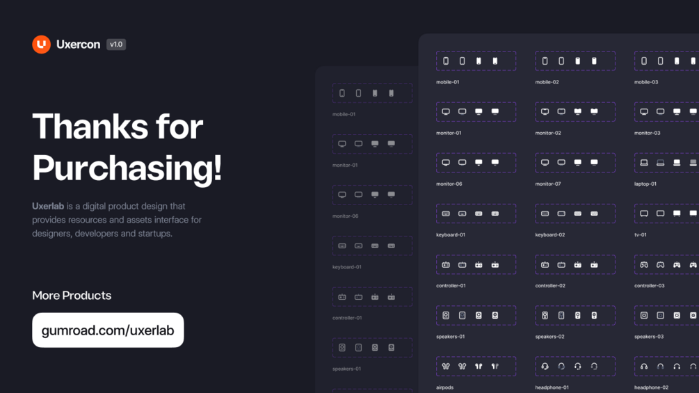 Uxercon Icon Set - Device & Electronic is a Pixel perfect and High-quality icon library to boost your websites, apps, social networks, prints, and more digital design. 100 icons x 4 styles (Line, Duocolor, Solid & Duotone). Total 400 icons ready to use in all your projects.